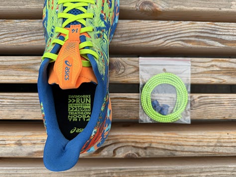 Всё-таки верю я в символизм. Модель Noosa Tri в компании ASICS отвечает за триатлон, поэтому, выбирая её, я надеялся вернуться в сезоне 2024 к swim-bike-run'у. Ага, вернулся. Пробежал 5-километровый беговой этап в эстафете. Впрочем, галочку в списке целей на год ставить можно.