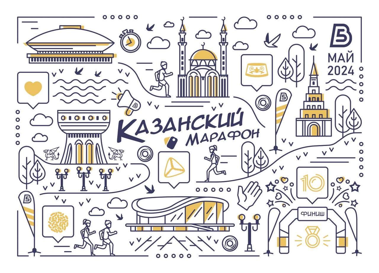 В Казани, как я писал на прошлой неделе, будет проходить юбилейный Казанский марафон, в рамках которого состоится Чемпионат России по марафону. Судя по анонсам и постам в соцсетях, организаторы готовят грандиозный праздник, причём не только во время забега, но и после.